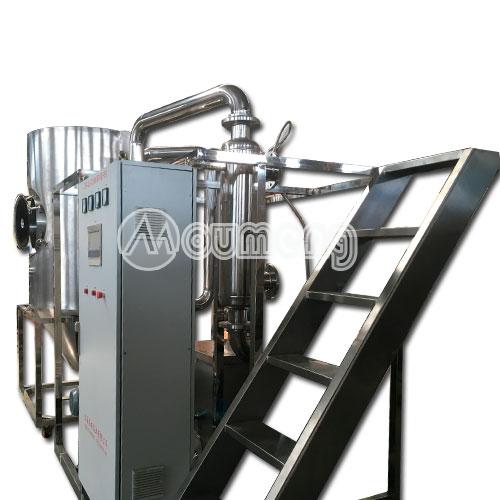 有機(jī)溶劑噴霧干燥機(jī)是系統(tǒng)組成一個封閉的循環(huán)回路,載熱體可以循環(huán)使用也叫閉式循環(huán)噴霧干燥機(jī)。對于揮發(fā)物是有機(jī)化學(xué)溶劑、有毒或逸出后能對人身、環(huán)境造成危害物料的干燥,料液中含有的有機(jī)溶劑或產(chǎn) 品是易氧化、易燃、易爆的物料,一般情況下,需用這種流程的物料都是不能接觸氧氣的,所以載熱體大多使用惰性氣體(如氮?dú)?、二氧化碳?/span>);此種方式又稱惰 性氣體干燥。從干燥器排出的尾氣,經(jīng)過氣固分離后還要經(jīng)過冷凝器回收溶劑或去除濕分,再經(jīng)加熱器升溫后進(jìn)入干燥器進(jìn)行循環(huán)使用。通過載熱體和閉式循環(huán)方 式,我們可以有效的避免物質(zhì)干燥遭遇高溫危險、防止噴霧干燥過程中與氧氣接觸,粉塵90%以上回收等。